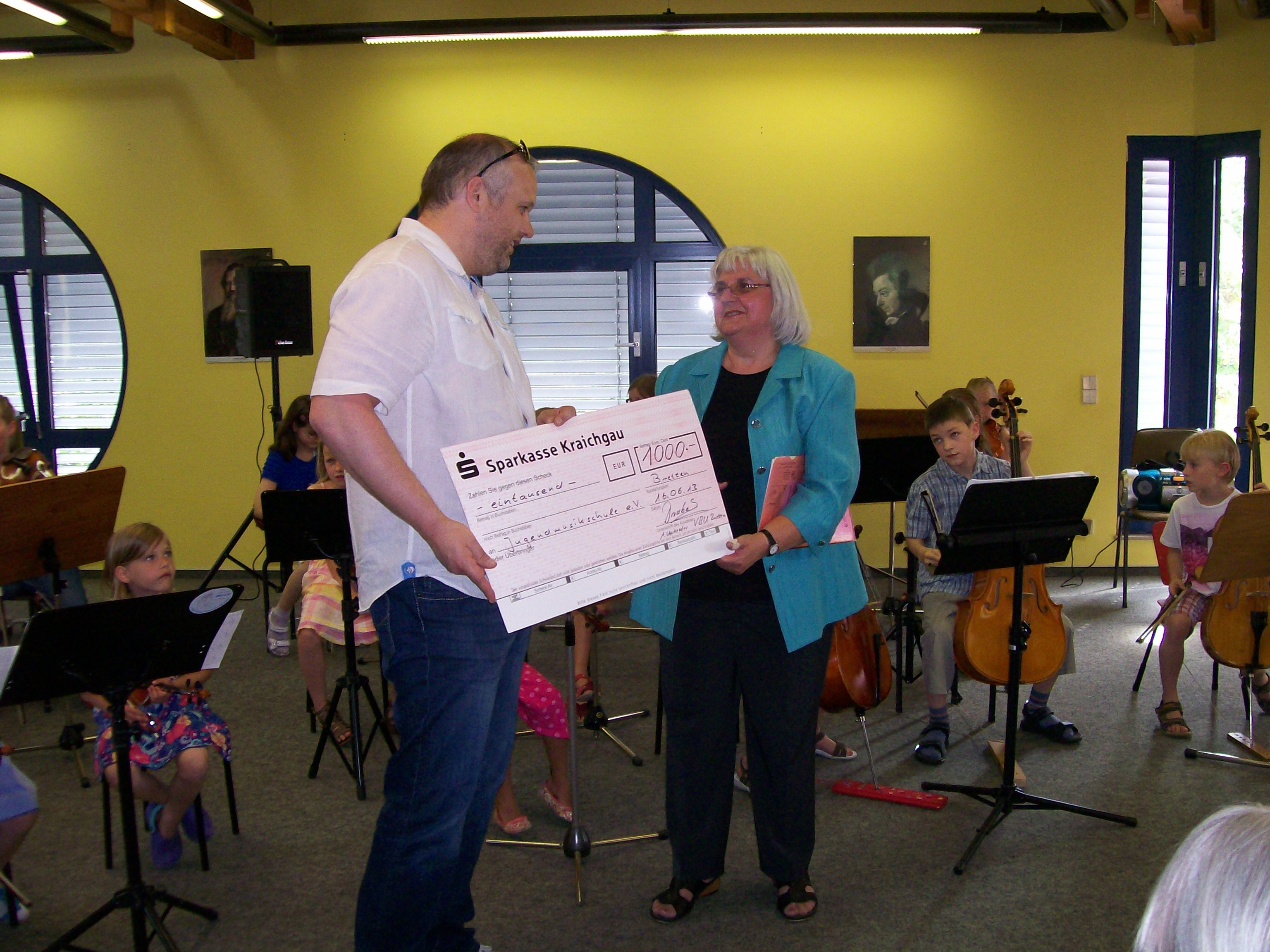 Am vergangenen Samstag (16.06.) hatte die Jugendmusikschule zum Tag der Offenen Tür eingeladen. Andreas Drabek, der Vorstand der VBU, hat die Gelegenheit genutzt, um die schwer von dem Hochwasser betroffene Musizieranstalt mit einer Spende aus dem „Topf“ der VBU zu unterstützen. Durch die Überflutung der Übungsräume ging eine große Anzahl an Instrumenten verloren. Schulleiterin Inge Herbster hat den Scheck dankend entgegengenommen.